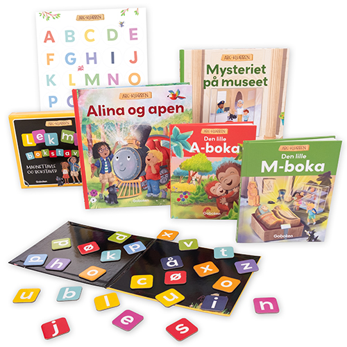 Dere får to hovedbøker og to ordbøker i hver pakke, og hver bokstav er knyttet til et spennende detektivmysterium. Til slutt vil barnet ha blitt godt kjent med alle bokstavene!