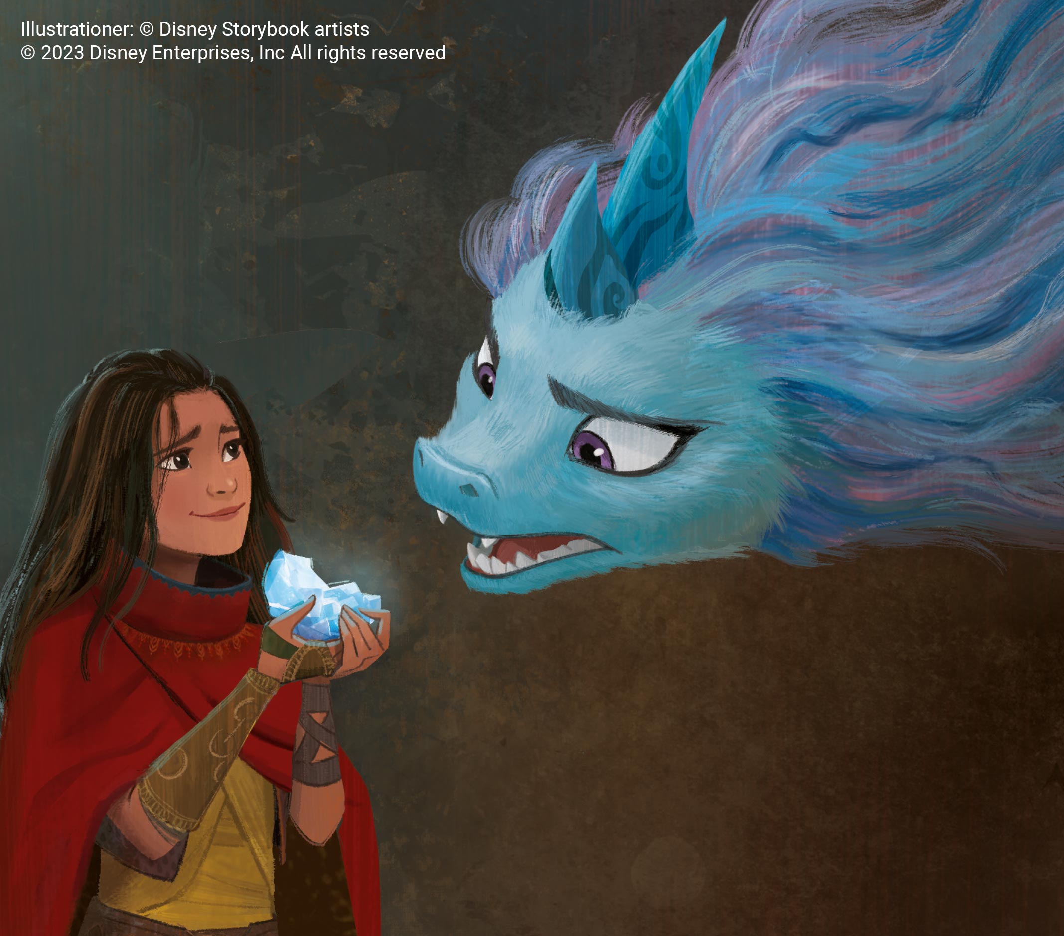 Midt i denne splittelsen står Raya – en dyktig kriger og lojal datter, formet av tap og svik. Når en ny trussel vokser, begir hun seg ut på en episk ferd for å finne den aller siste dragen, Sisu. Men Sisu er ikke akkurat slik Raya hadde forventet: Hun er godhjertet, morsom – og tror kanskje litt for sterkt på samarbeid og tillit.