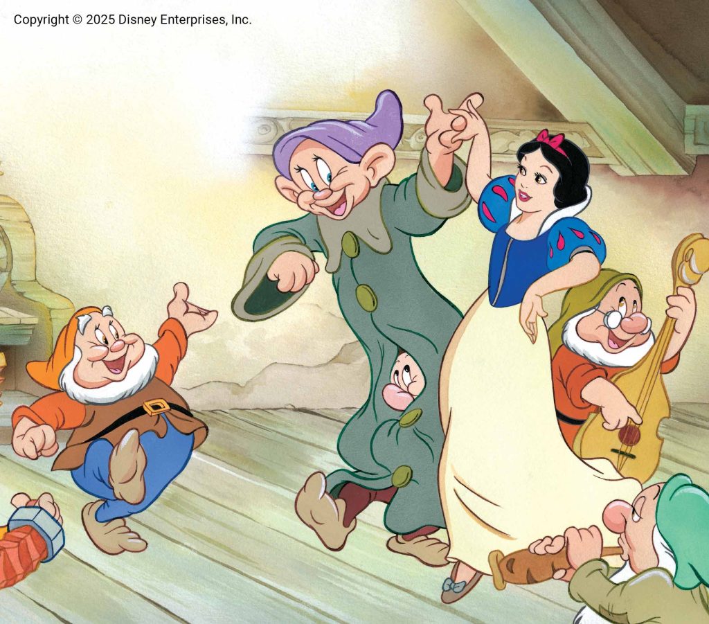 Snøhvit og de syv dvergene er et eventyr som aldri går av moten. En fortelling om godhet i møte med ondskap, om styrken i uskyld og vennskap – og om at ekte kjærlighet overvinner alt.